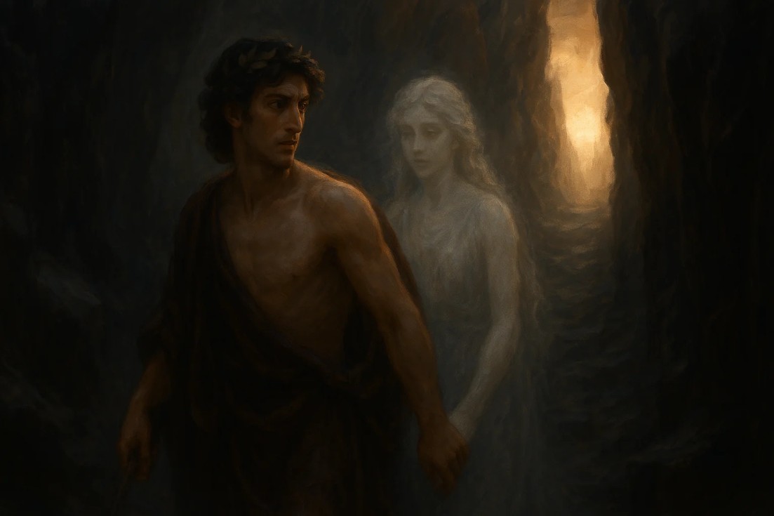 Eurydice was there—her eyes full of love and sadness. But before she could say a word, she was pulled back into the shadows, lost forever.