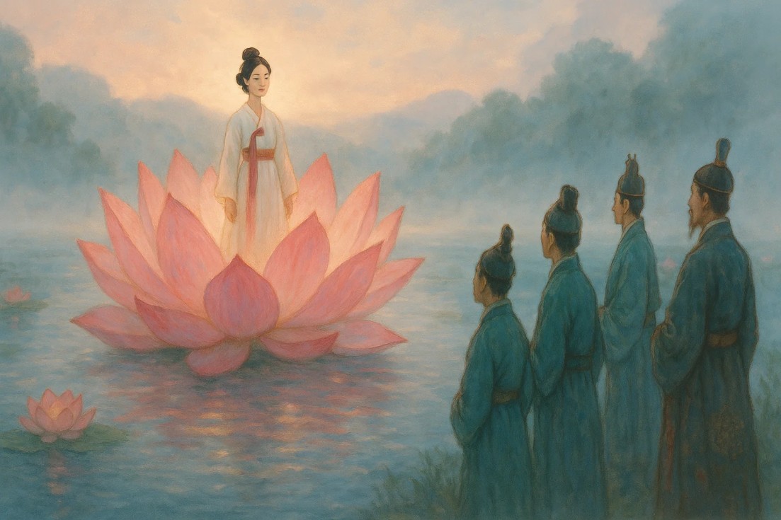 Next time you see a lotus flower floating on still water, think of Simcheong—quiet, brave, and unshakably loving. Her story says: from the deepest waters, the purest gifts rise.