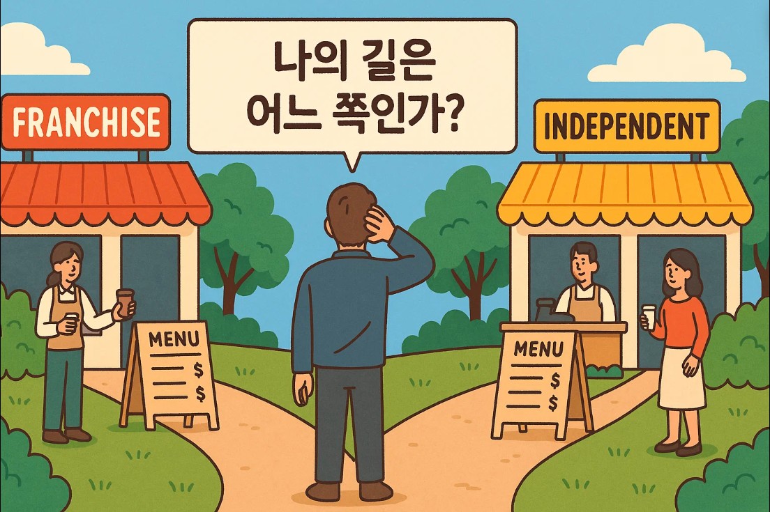 프랜차이즈 창업이냐, 독립 브랜드 창업이냐입니다.
